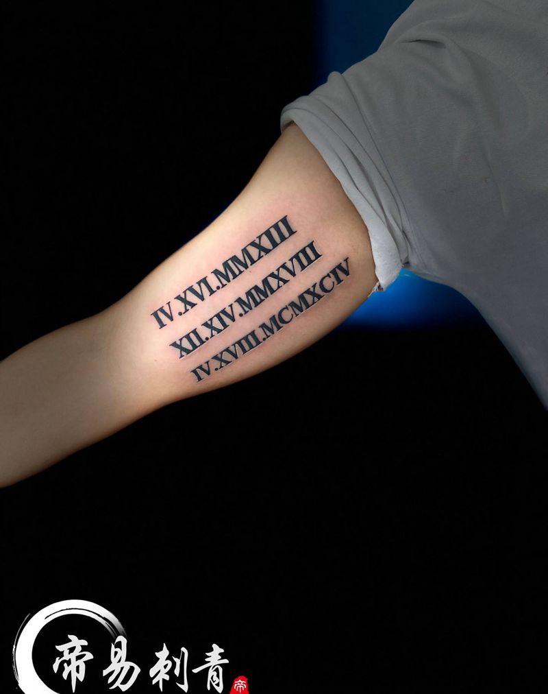 当前位置: 首页 >河北省邢台市纹身店-帝易刺青纹身图案>罗马数字纹身图片_手臂纹身图案