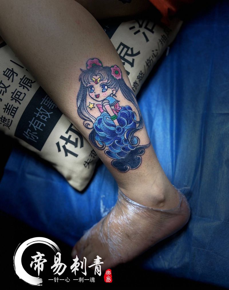 美少女战士,遮盖纹身图片_腿部水彩纹身图案