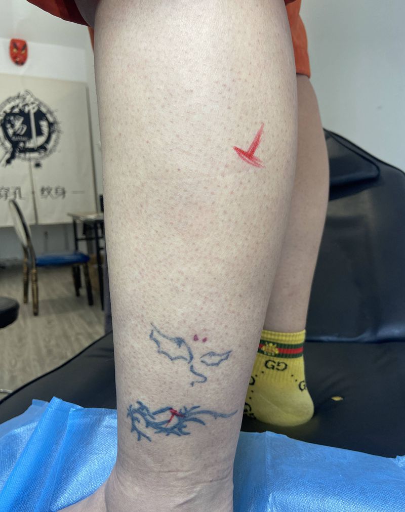 • T网红王老大花腿龙纹身图片_腿部新传统纹身图案