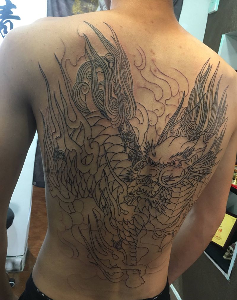 • T云龙九郎纹身图片_背部老传统云龙九郎纹身图案