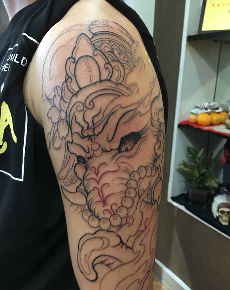 当前位置: 首页 >河北省邢台市纹身店-帝易刺青纹身图案>象神纹身图片_肩部新传统纹身图案