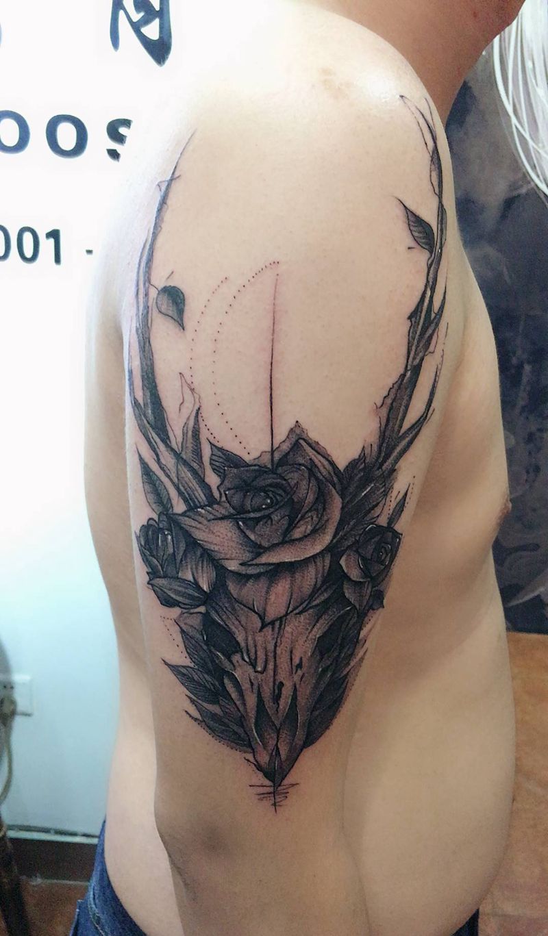 当前位置: 首页 >河北省邢台市纹身店-帝易刺青纹身图案>暗黑鹿头纹身图片_点刺纹身图案
