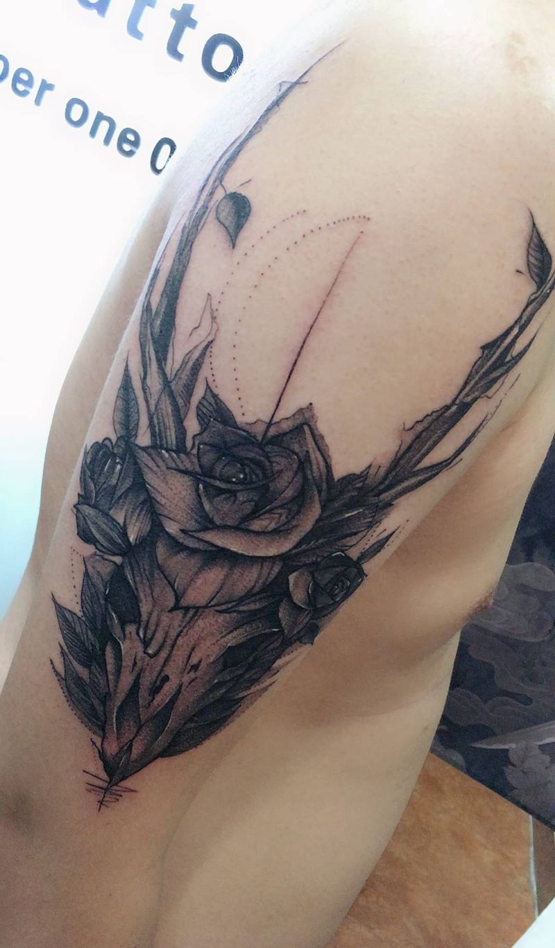 当前位置: 首页 >河北省邢台市纹身店-帝易刺青纹身图案>暗黑鹿头纹身图片_点刺纹身图案