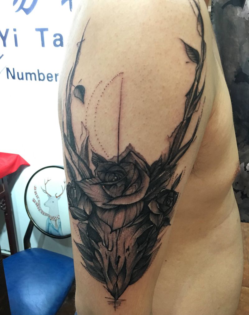 当前位置: 首页 >河北省邢台市纹身店-帝易刺青纹身图案>暗黑鹿头纹身图片_点刺纹身图案