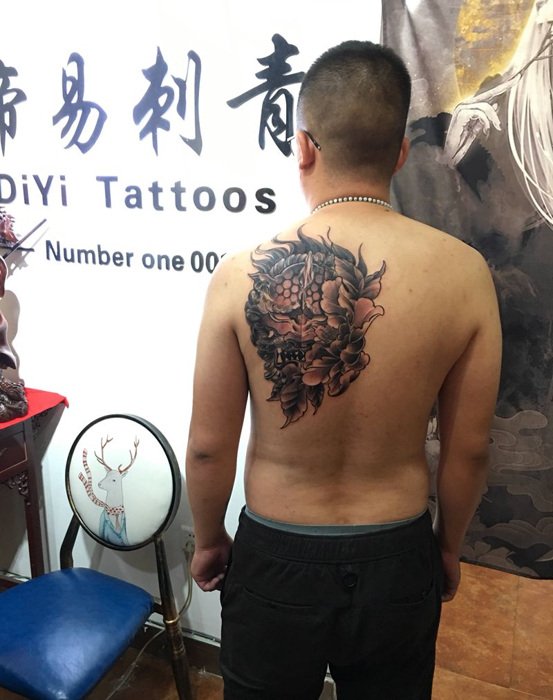 • 黑灰满背纹身图案