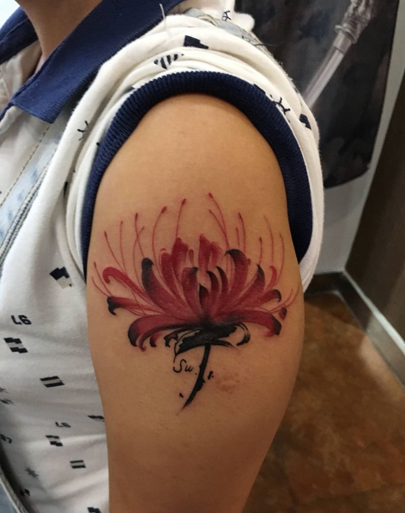 当前位置: 首页 >河北省邢台市纹身店-帝易刺青纹身图案>彼岸花纹身图片_水彩纹身图案