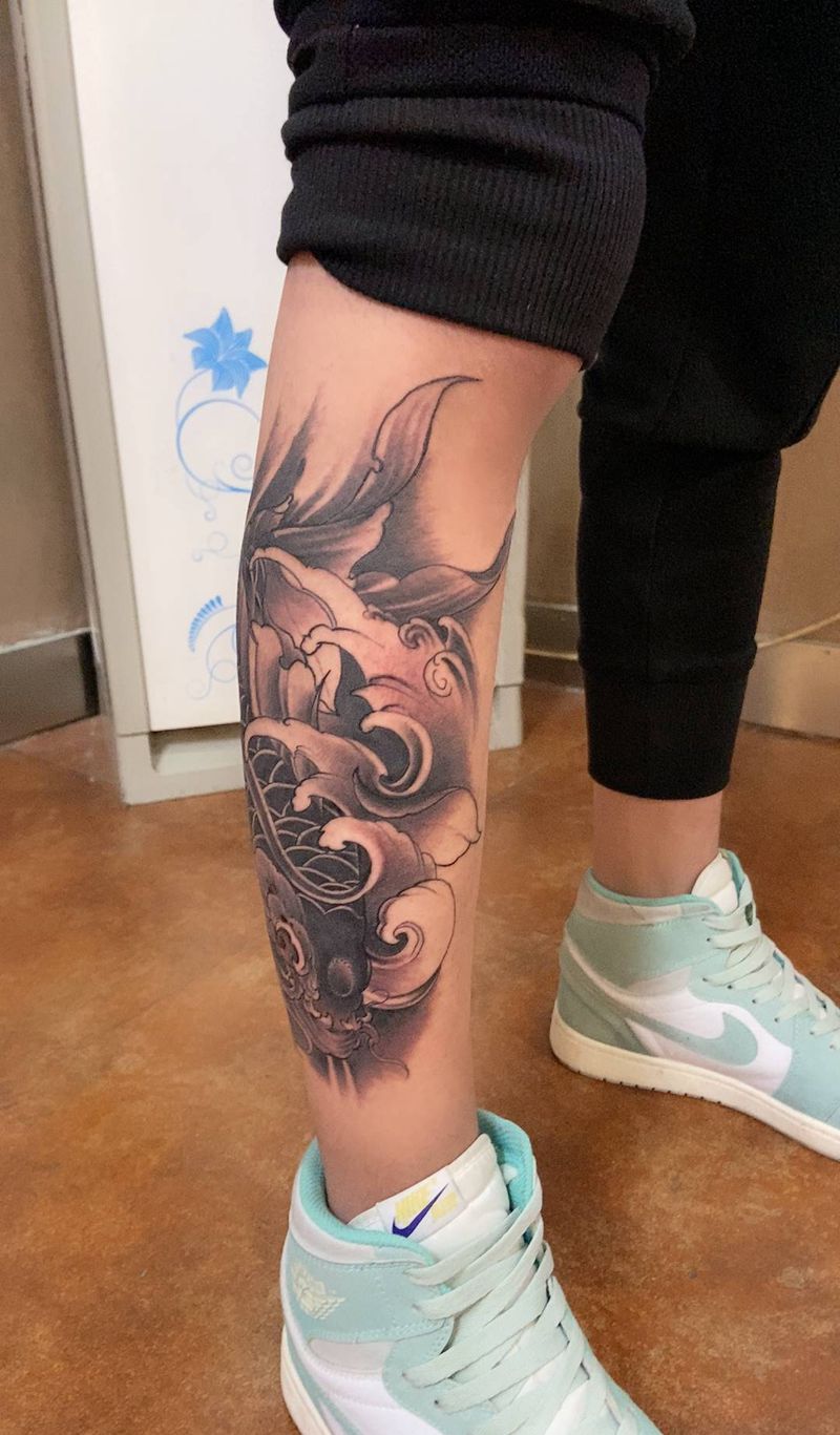 当前位置: 首页 >河北省邢台市纹身店-帝易刺青纹身图案>鱼纹身图片_腿部纹身图案
