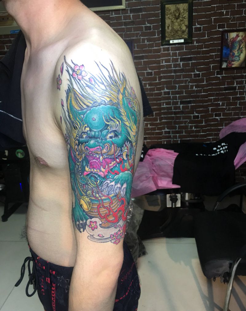 当前位置: 首页 >河北省邢台市纹身店-帝易刺青纹身图案>大臂唐狮纹身图片_新传统纹身图案