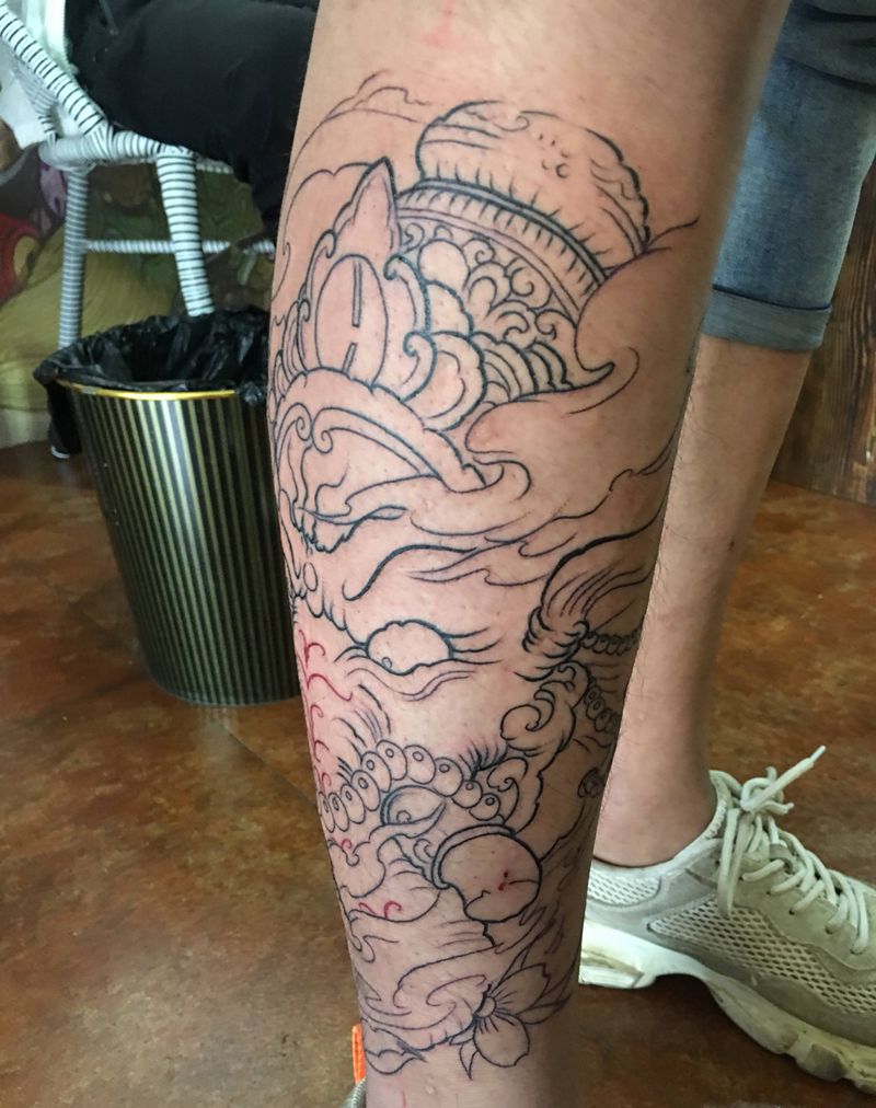 • T网红王老大花腿龙纹身图片_腿部新传统纹身图案