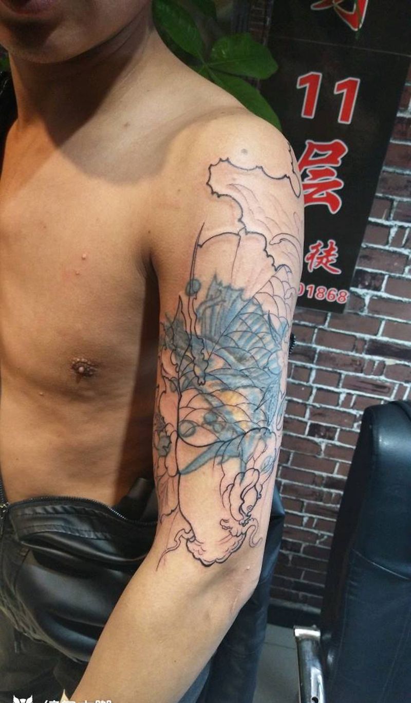 一组15张莲花纹身手