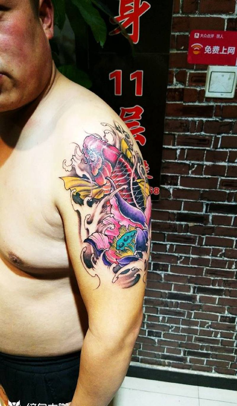 当前位置: 首页 >河北省邢台市纹身店-帝易刺青纹身图案>鱼纹身图片_手臂新传统纹身图案