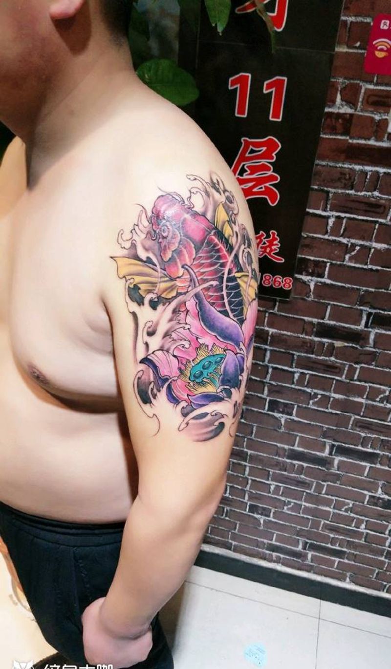 当前位置: 首页 >河北省邢台市纹身店-帝易刺青纹身图案>鱼纹身图片_手臂新传统纹身图案