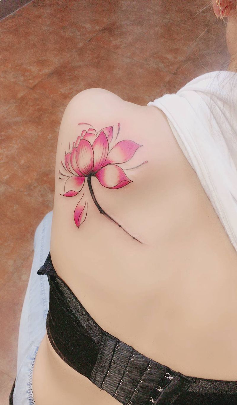 • 时尚性感的腹部莲花纹身图案