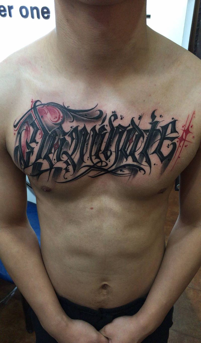 当前位置: 首页 >河北省邢台市纹身店-帝易刺青纹身图案>原创花体字纹身图片_胸部花体字纹身图案