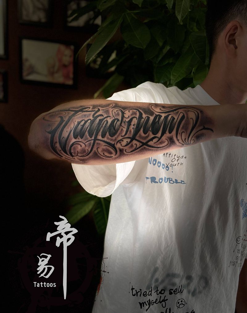 当前位置: 首页 >河北省邢台市纹身店-帝易刺青纹身图案>花体字纹身图片_手臂花体字纹身图案