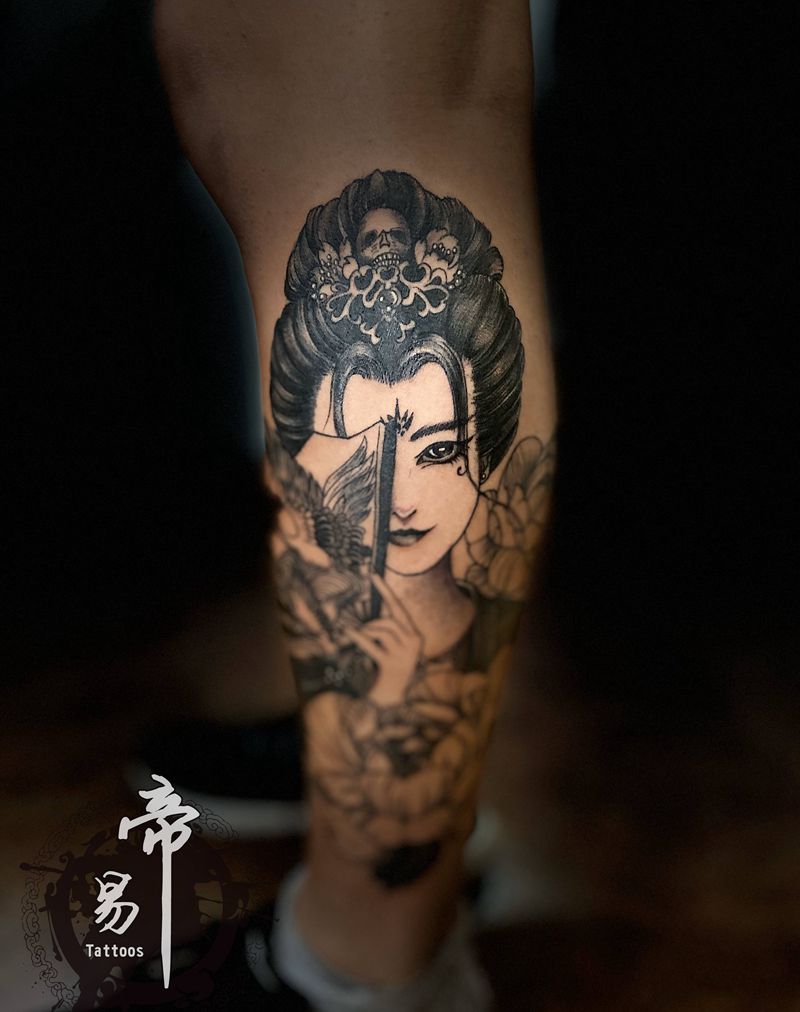 当前位置: 首页 >河北省邢台市纹身店-帝易刺青纹身图案>艺伎纹身图片_腿部纹身图案