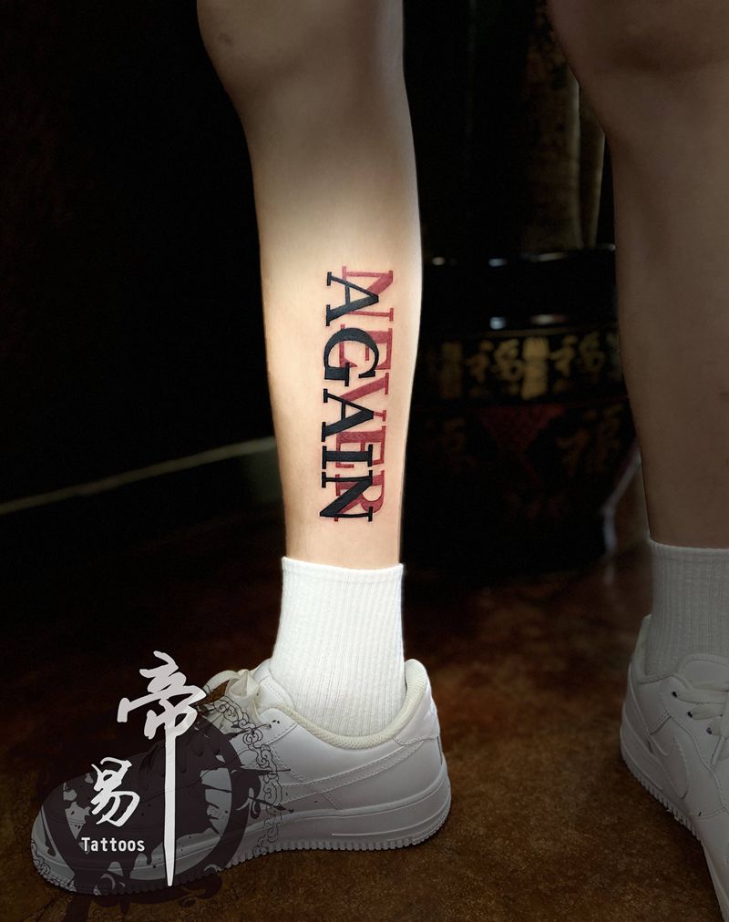 当前位置: 首页 >河北省邢台市纹身店-帝易刺青纹身图案>字纹身图片_腿部花体字纹身图案