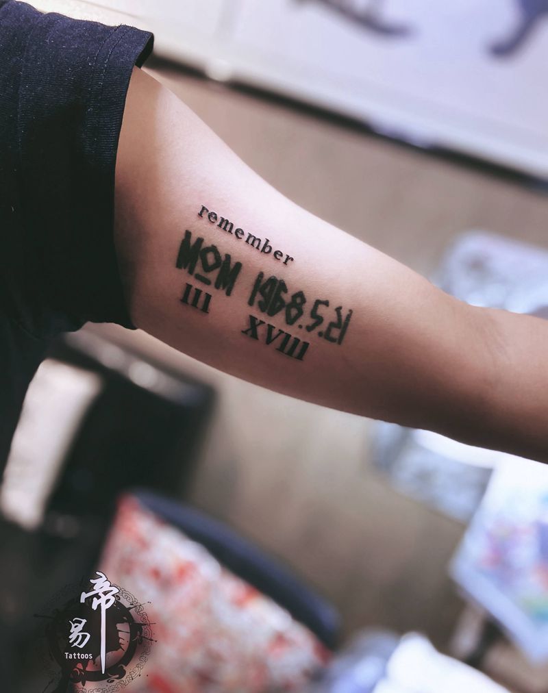 • T家庭图,一家四口生日纪念!纹身图片_手臂纹身图案
