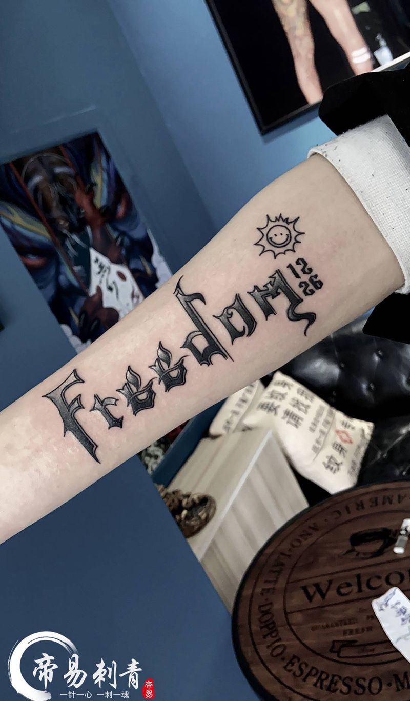 当前位置: 首页 >河北省邢台市纹身店-帝易刺青纹身图案>花体字纹身图片_手臂花体字纹身图案