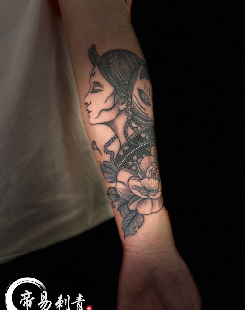 当前位置: 首页 >河北省邢台市纹身店-帝易刺青纹身图案>素花艺伎纹身图片_手臂新传统纹身图案