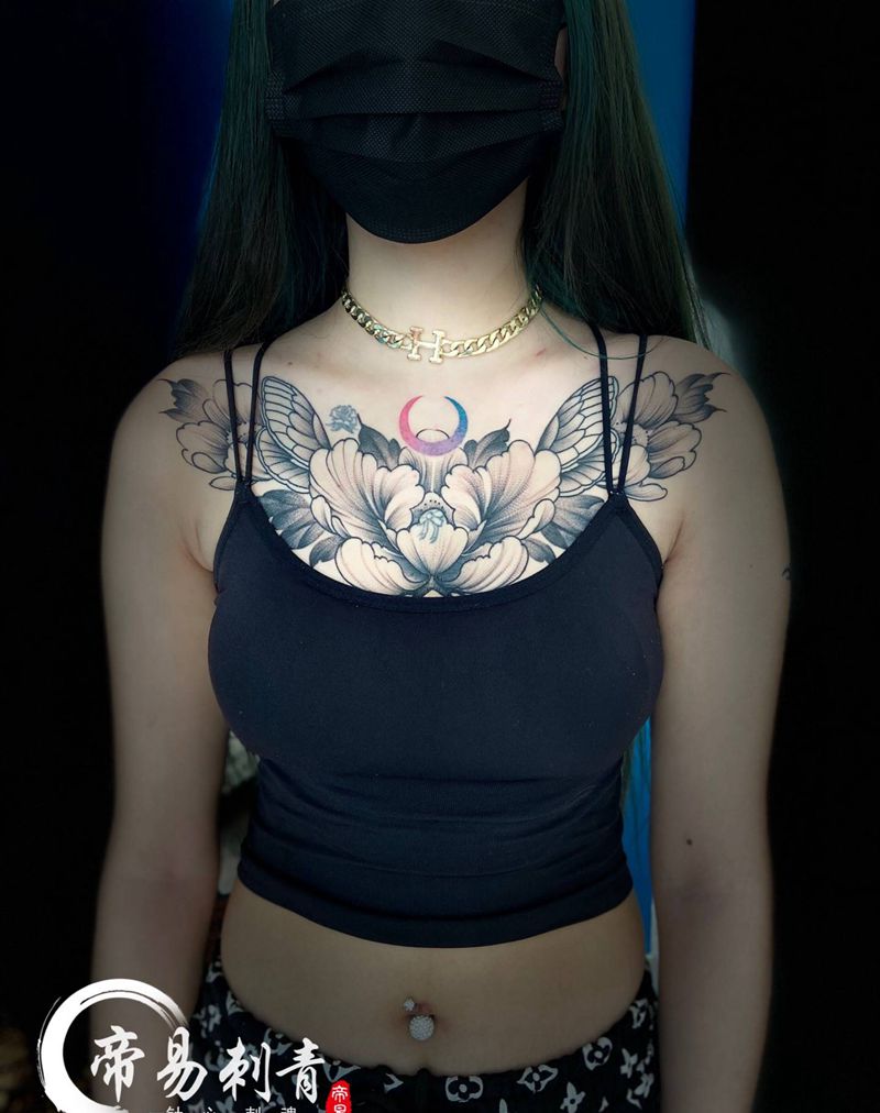 • 女性大花胸纹身_43张霸气漂亮的女性大花胸纹身图案作品