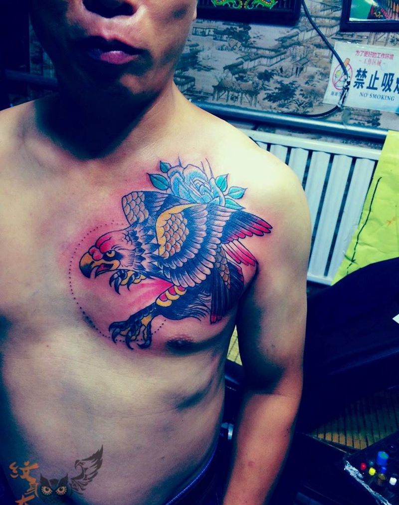 当前位置: 首页 >河北省保定市纹身店-佳星刺青工作室纹身图案>胸口鹰纹身图片
