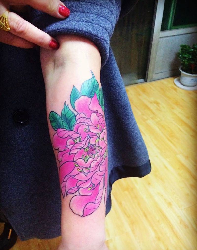 当前位置: 首页 >河北省保定市纹身店-佳星刺青工作室纹身图案>小臂牡丹纹身图片