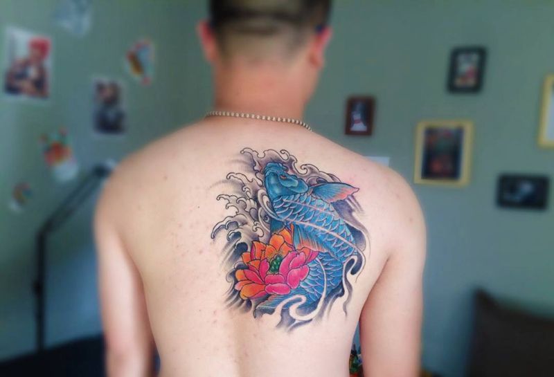 当前位置: 首页 >河北省保定市纹身店-佳星刺青工作室纹身图案>后肩鲤鱼纹身图片