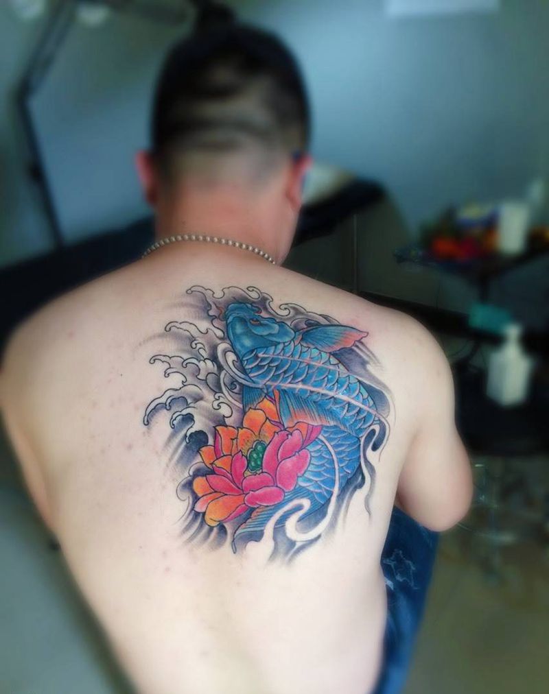 当前位置: 首页 >河北省保定市纹身店-佳星刺青工作室纹身图案>后肩鲤鱼纹身图片