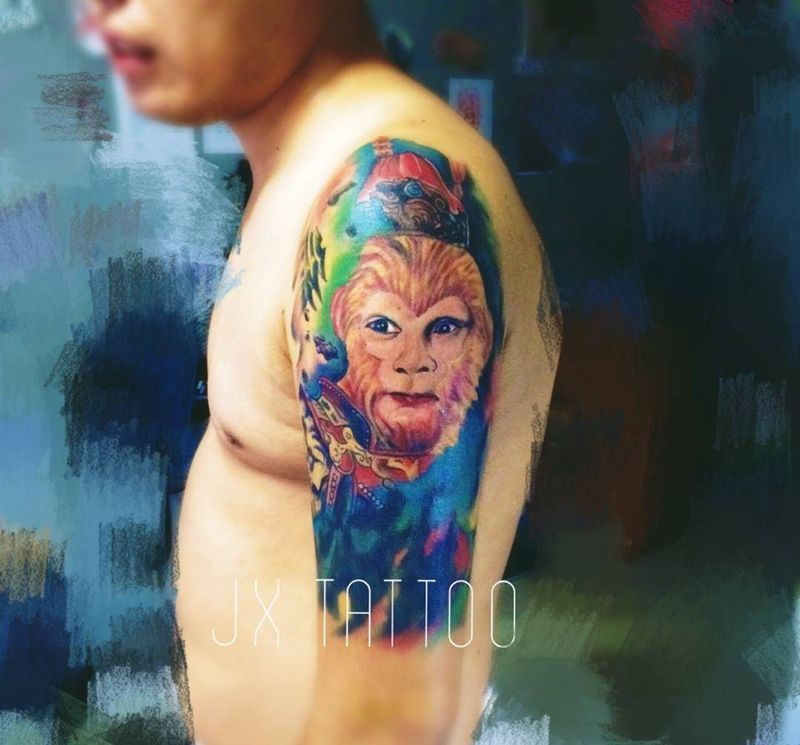 当前位置: 首页 >河北省保定市纹身店-佳星刺青工作室纹身图案>修改美猴王纹身图片