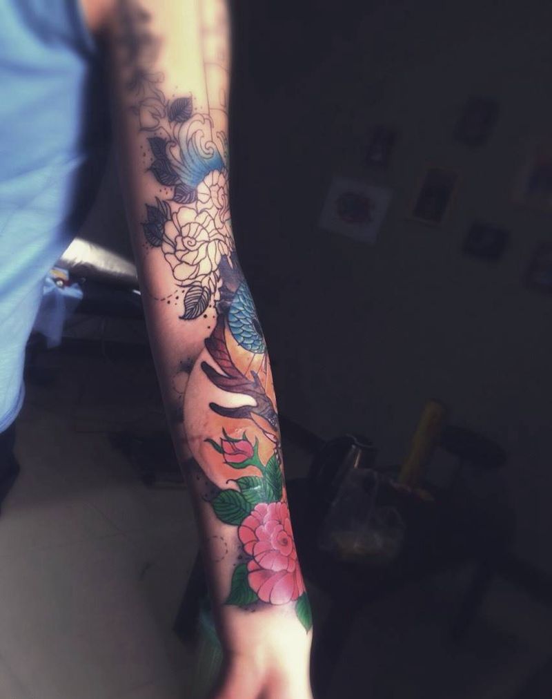 当前位置: 首页 >河北省保定市纹身店-佳星刺青工作室纹身图案>鹿花臂未完纹身图片