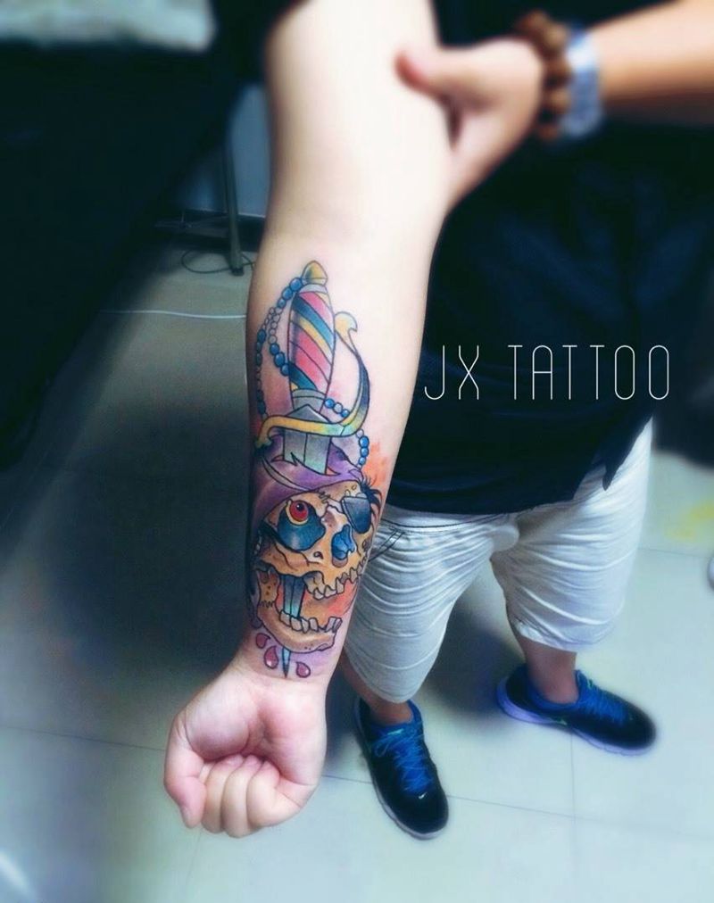 当前位置: 首页 >河北省保定市纹身店-佳星刺青工作室纹身图案>小臂骷髅纹身图片
