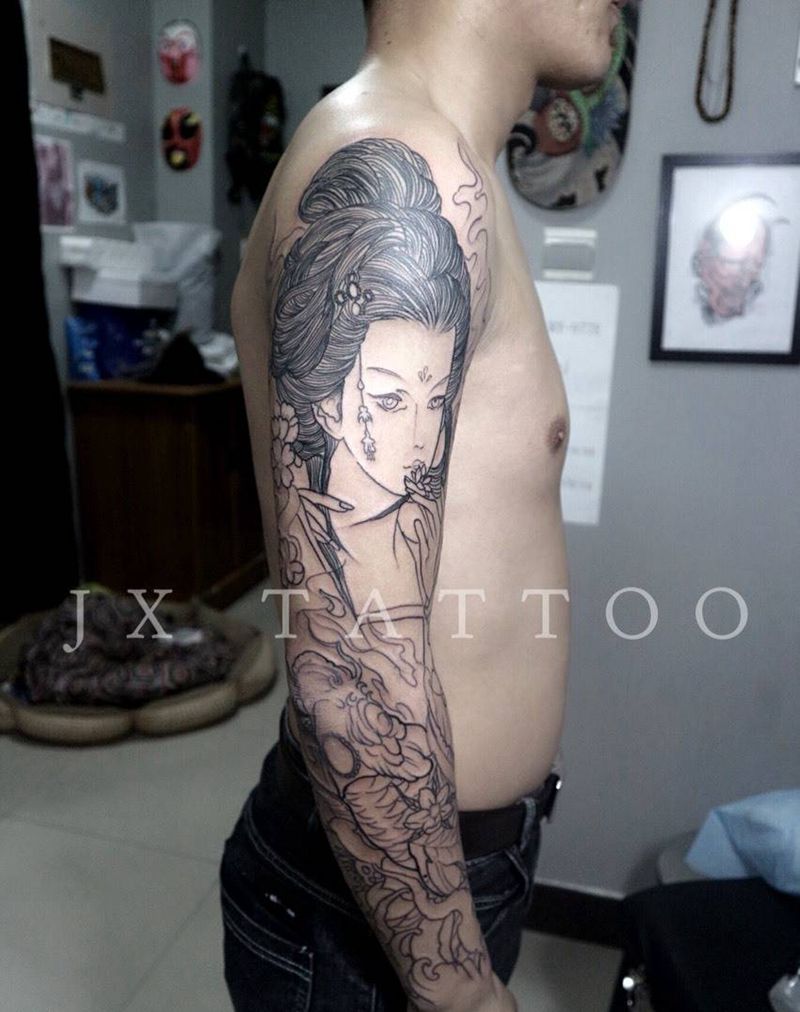 当前位置: 首页 >河北省保定市纹身店-佳星刺青工作室纹身图案>花臂割线未完纹身图片