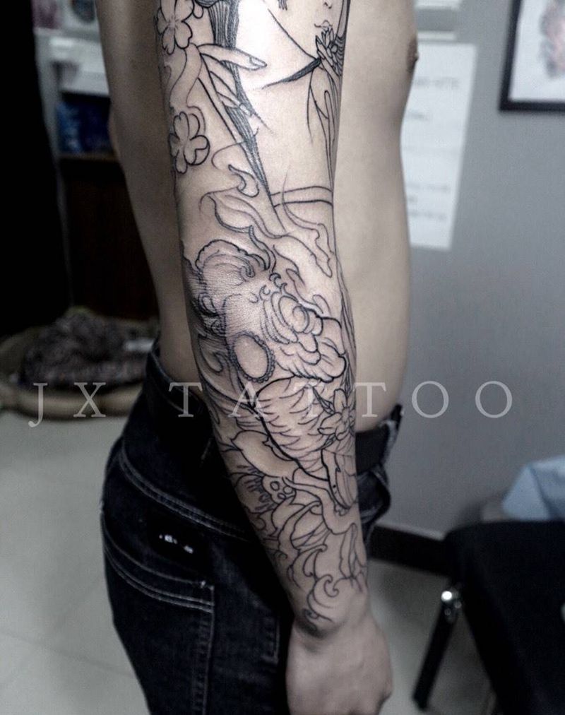 当前位置: 首页 >河北省保定市纹身店-佳星刺青工作室纹身图案>花臂割线未完纹身图片