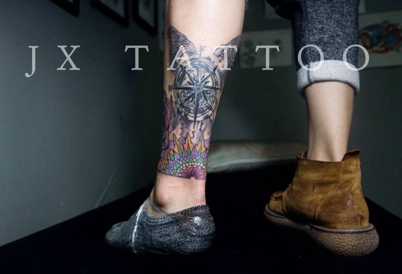 • T网红王老大花腿龙纹身图片_腿部新传统纹身图案