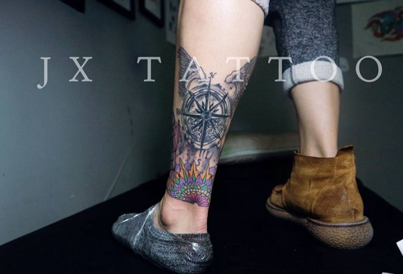 • T网红王老大花腿龙纹身图片_腿部新传统纹身图案