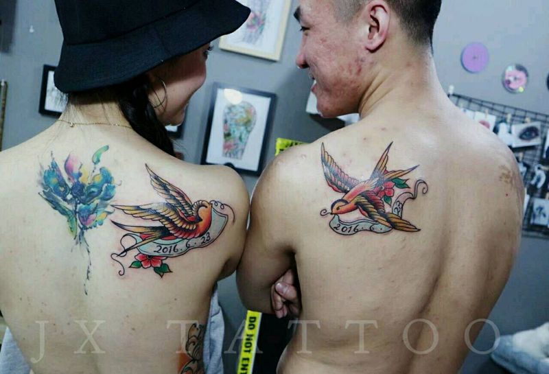 当前位置: 首页 >河北省保定市纹身店-佳星刺青工作室纹身图案>情侣小燕子纹身图片
