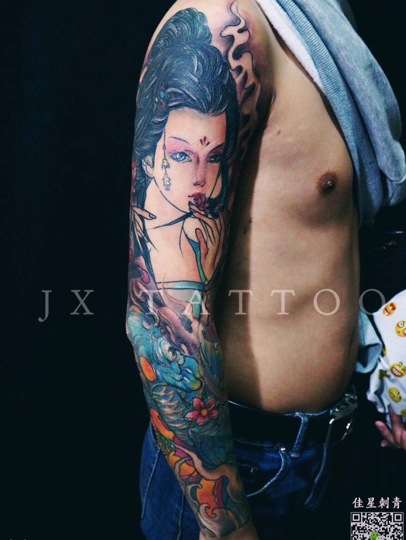 当前位置: 首页 >河北省保定市纹身店-佳星刺青工作室纹身图案>花臂完成纹身图片