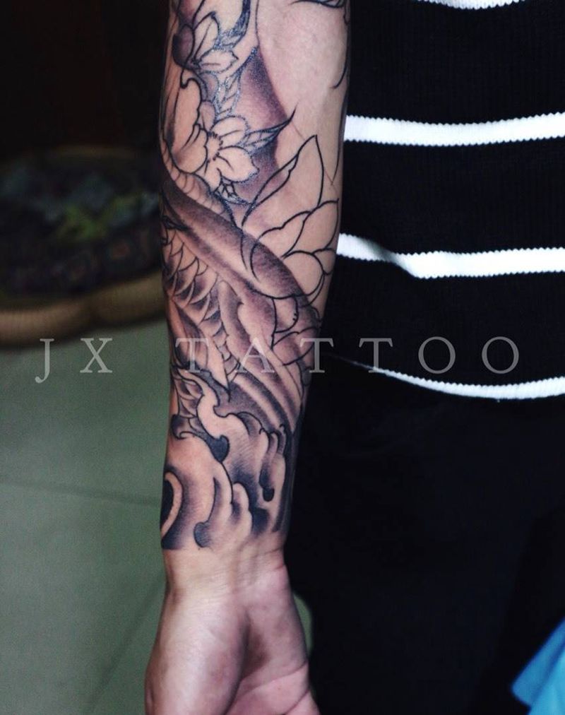当前位置: 首页 >河北省保定市纹身店-佳星刺青工作室纹身图案>先上点黑灰纹身图片