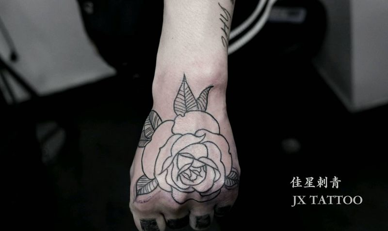 • 手背潮流时尚的玫瑰花眼睛纹身图案