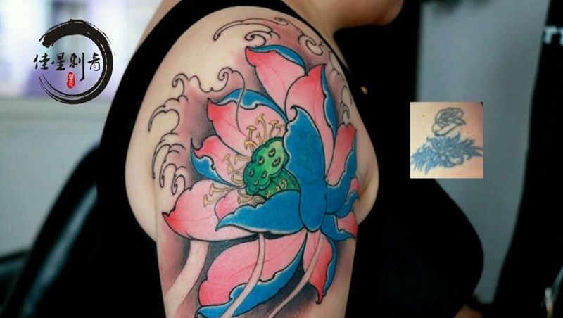 一组15张莲花纹身手
