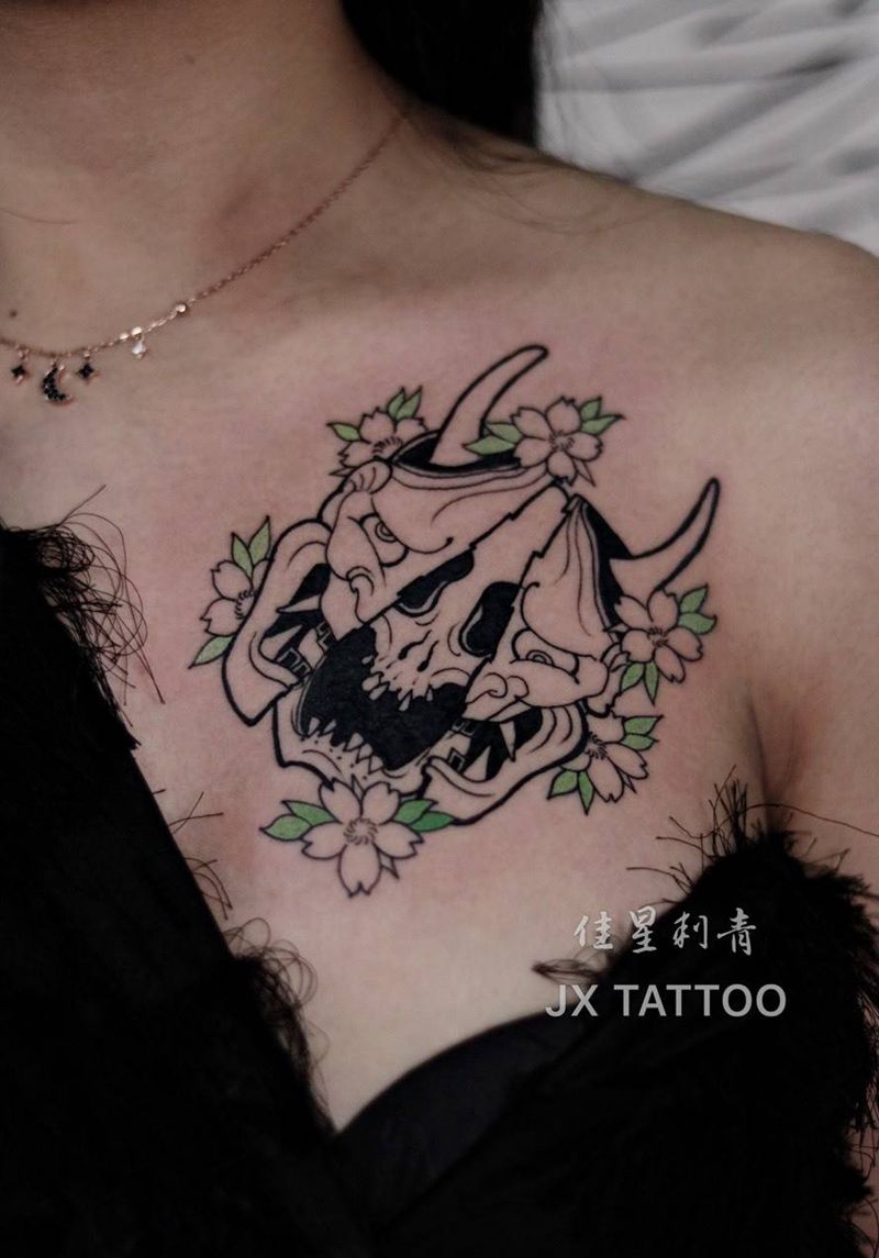 • 女性大花胸纹身_43张霸气漂亮的女性大花胸纹身图案作品