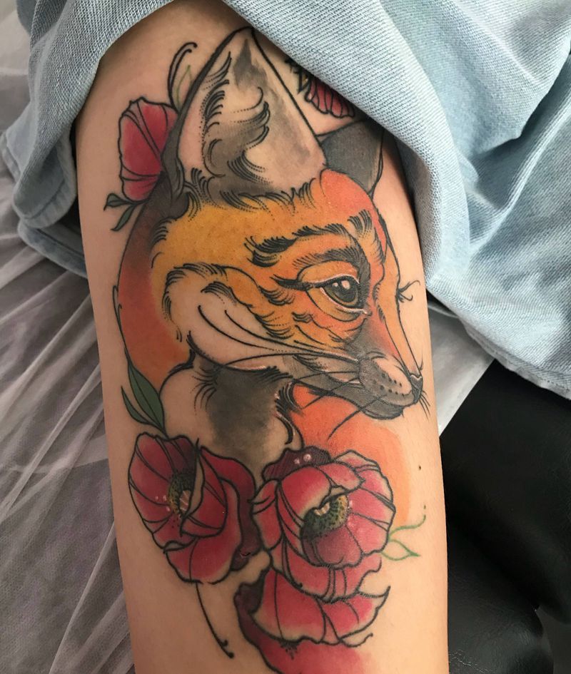 恢复后纹身图片_腿部狐狸纹身图案