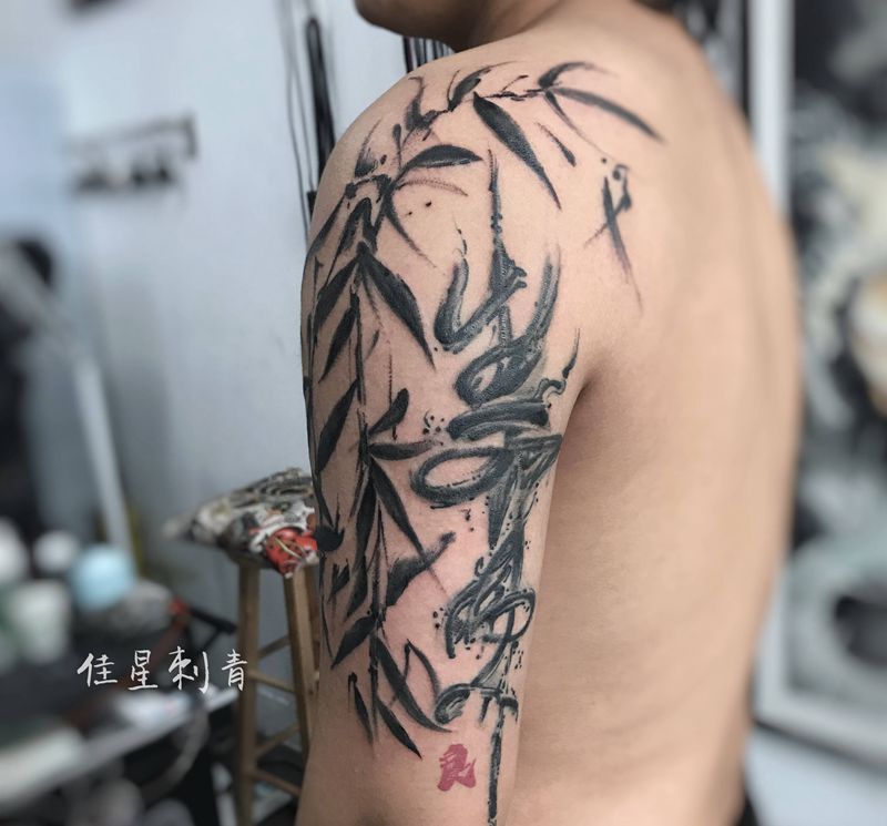 字恢复后添加纹身图片_手臂水墨纹身图案