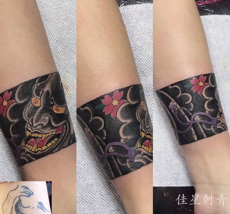 当前位置: 首页 >河北省保定市纹身店-佳星刺青工作室纹身图案>遮盖纹身图片_手臂老传统般若纹身图案