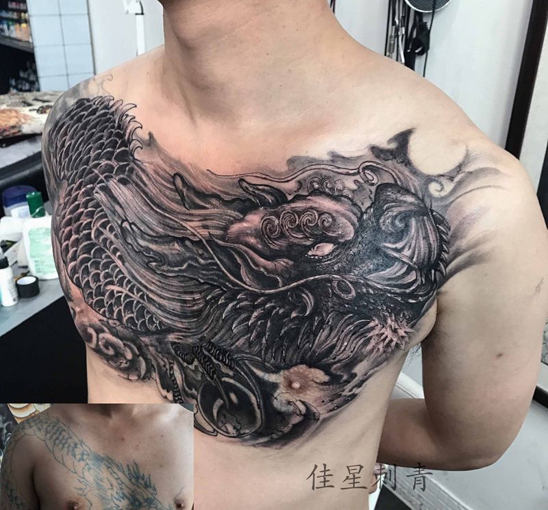 当前位置: 首页 >河北省保定市纹身店-佳星刺青工作室纹身图案>遮盖纹身图片_胸部龙纹身图案