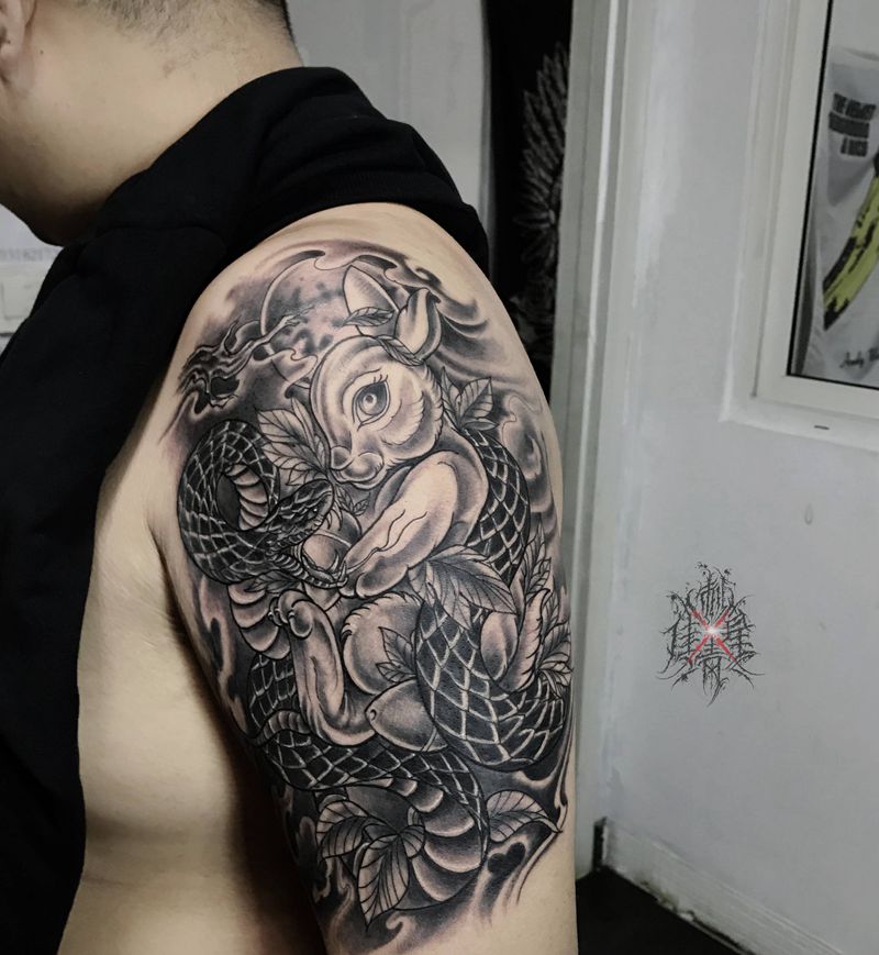 当前位置: 首页 >河北省保定市纹身店-佳星刺青工作室纹身图案>蛇盘兔纹身图片_手臂纹身图案