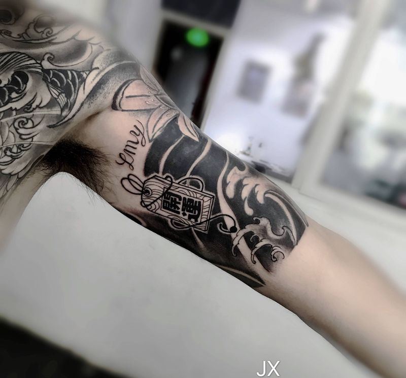 修改添加,胸口鲤鱼恢复后纹身图片_胸部手臂纹身图案