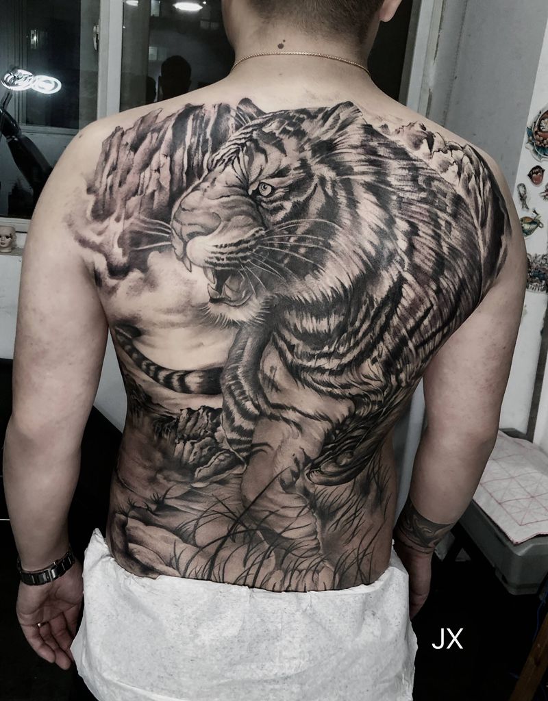 黑灰满背纹身图案
