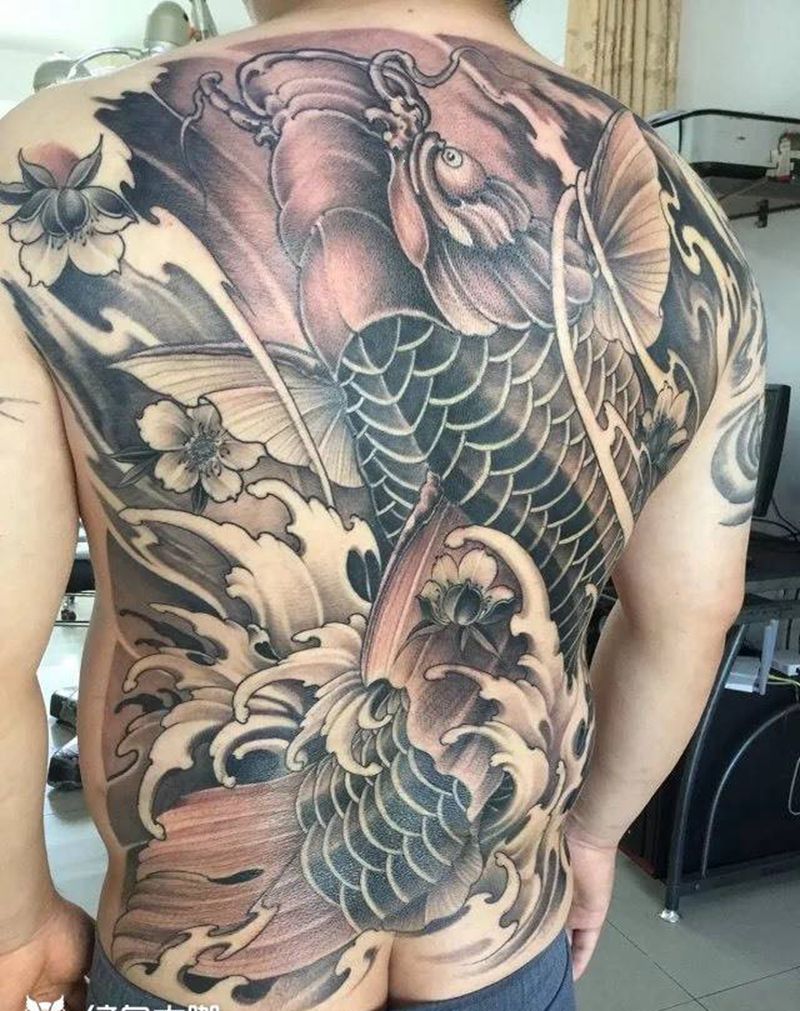 当前位置: 首页 >河北省保定市纹身店-液色刺青纹身图案>满背鱼纹身图片